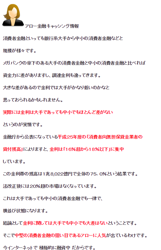 アロー金融の金利は大手と比べてもそんなに違いがありません。