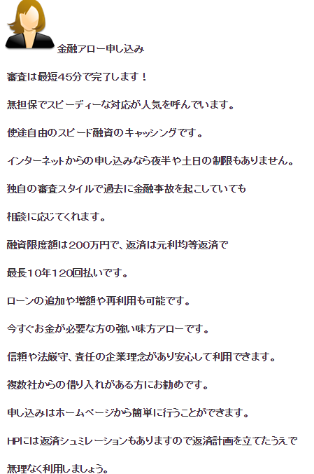 公式サイト→≪独自審査≫株式会社アローのWEBキャッシング!
